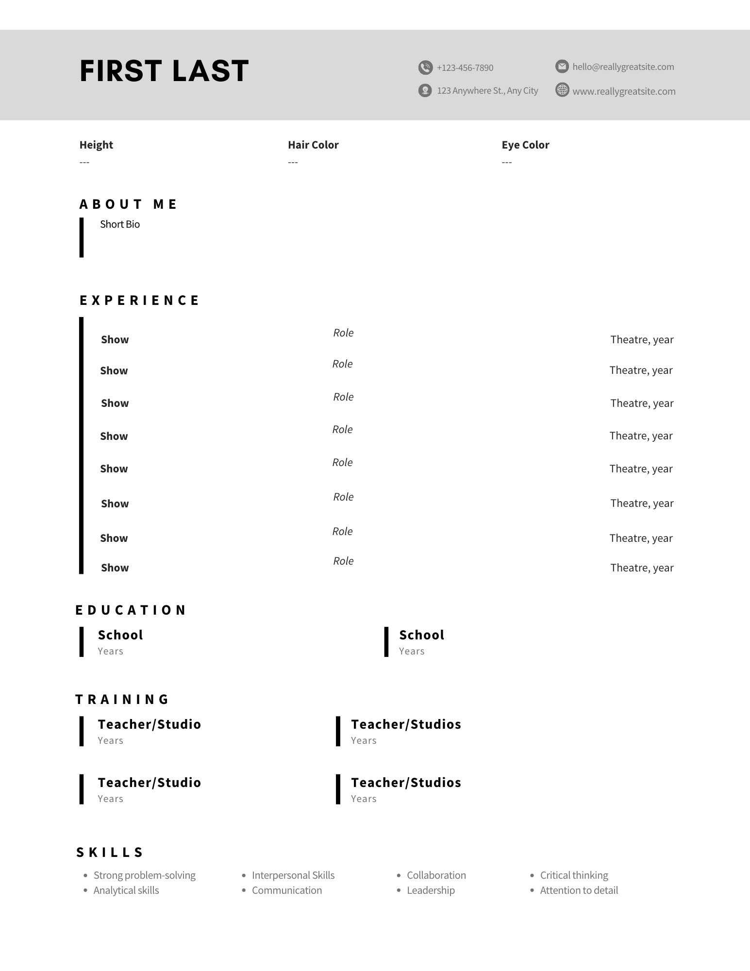 Theater resume styles have evolved to reflect changing industry trends and preferences. Times, styles, and tastes change, but we all must start somewhere. I have created five templates through Canva that are easily usable and personalizable. Whether you're an aspiring actor, director, or theater professional, these customizable templates will help you showcase your talent and experience in a visually appealing way.